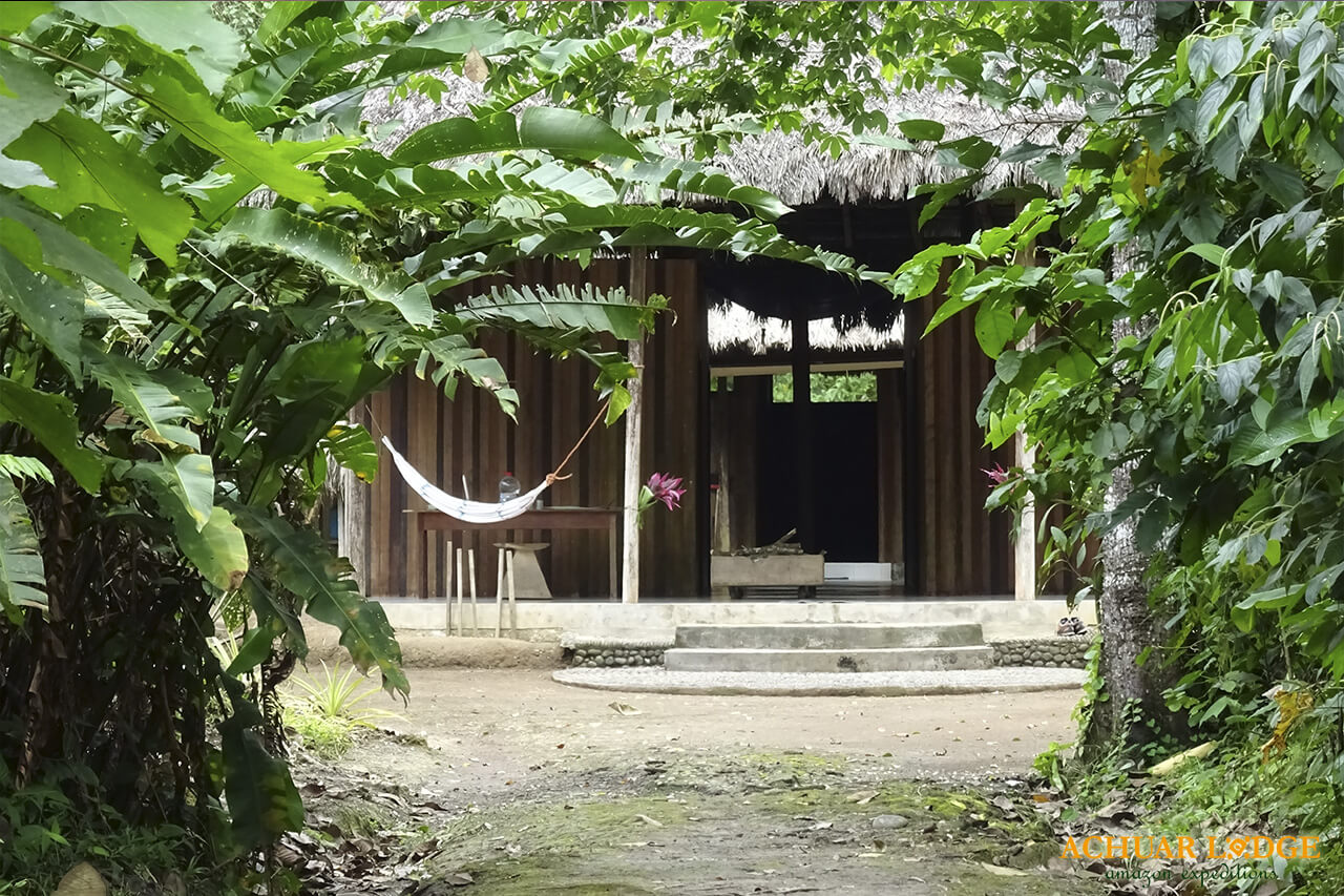 Die Achuar Lodge ist aufgeteilt in zwei große Häuser die etwa 500 Meter entfernt aufgebaut sind und im typischen Stil erbaut sind.